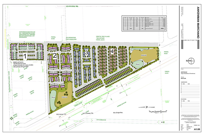 Our firm was engaged to prepare a masterplan for a large parcel of land in the City of Marysville, a small city on the I-5 corridor north of the metropolitan Seattle area. Marysville growth was driven by the expanding local economy as well as addressing the housing needs of a growing and expanding Seattle urban complex.